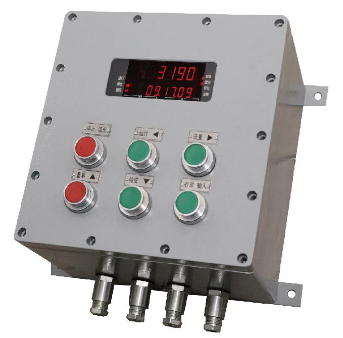 XK3190-Ex-C602G外殼采用鋁合金鑄造成型,外表面噴塑。整體為隔爆腔體型式,正面設有鋼化玻璃視窗,供觀察儀表顯示數(shù)據(jù)。箱面設有控制操作按鍵。下部為電纜引入接頭。